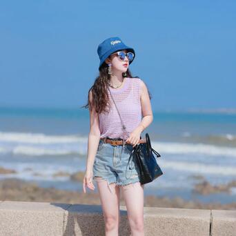#夏日生活打卡季#🌈出行游玩新风尚!淡紫色网格背心,温柔又浪漫,搭